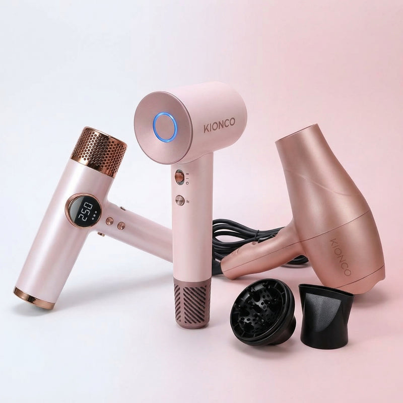 Many cheap dryers blast maximum heat from start to finish. That's what fries your ends. KIONCO dryers use high-speed ionic airflow to move more air at a controlled temperature your hair dries faster, spends less time under heat, and comes out smooth instead of rough.
